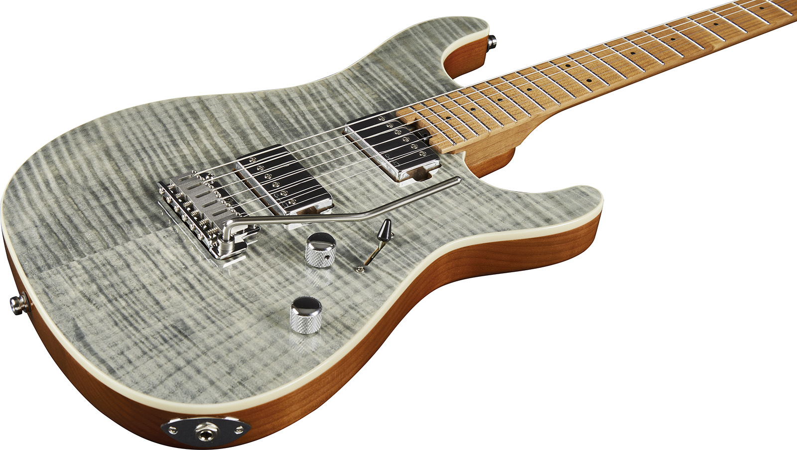 La lutherie des guitares Musa est de très haute qualité dans le but d’inspirer les guitaristes, et leur permettre d’exprimer leur meilleur d’eux-mêmes avec confort et performance. Le corps est composé d’aulne massif surmonté d’une table en érable canadien flammé, du plus bel effet. Le manche en érable torréfié, vissé 5 points, robuste et confortable, est surplombé d'une touche en érable torréfié de 22 cases, avec un diapason de 628 mm, apportant plus de confort de jeu. Le tremolo Eko Steel HRC57 intègre des pontets réglables indépendamment pour ajuster au mieux l'action et l'harmonique de chaque corde. Les mécaniques à blocage en configuration 4+2 assurent la stabilité de l’accordage et de vos notes. Enfin, la finition gris brillant est présente sur la table, ainsi que sur le devant de la tête, afin de magnifier avec élégance l’érable flammé.
