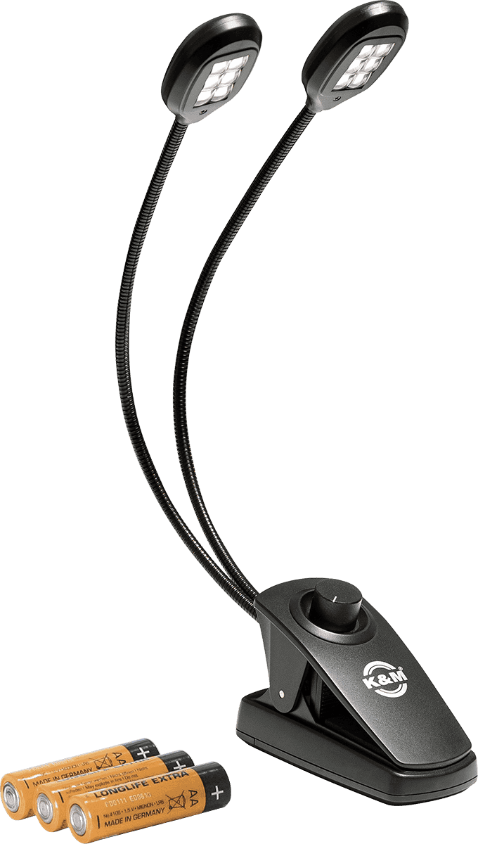 La flexibilité des deux cols de cygne permet au musicien de choisir entre unfaisceau de lumière concentré ou un éclairage uniforme de la partition. Chaquetête, équipée de 6 Led, peut être allumée individuellement. Leur faibleconsommation assure une grande autonomie et une longévité impressionnante à ceproduit. L'ajout d'un variateur d'intensité lumineuse permet d'obtenir l'éclairage désiré jusqu'à 2500 lux.