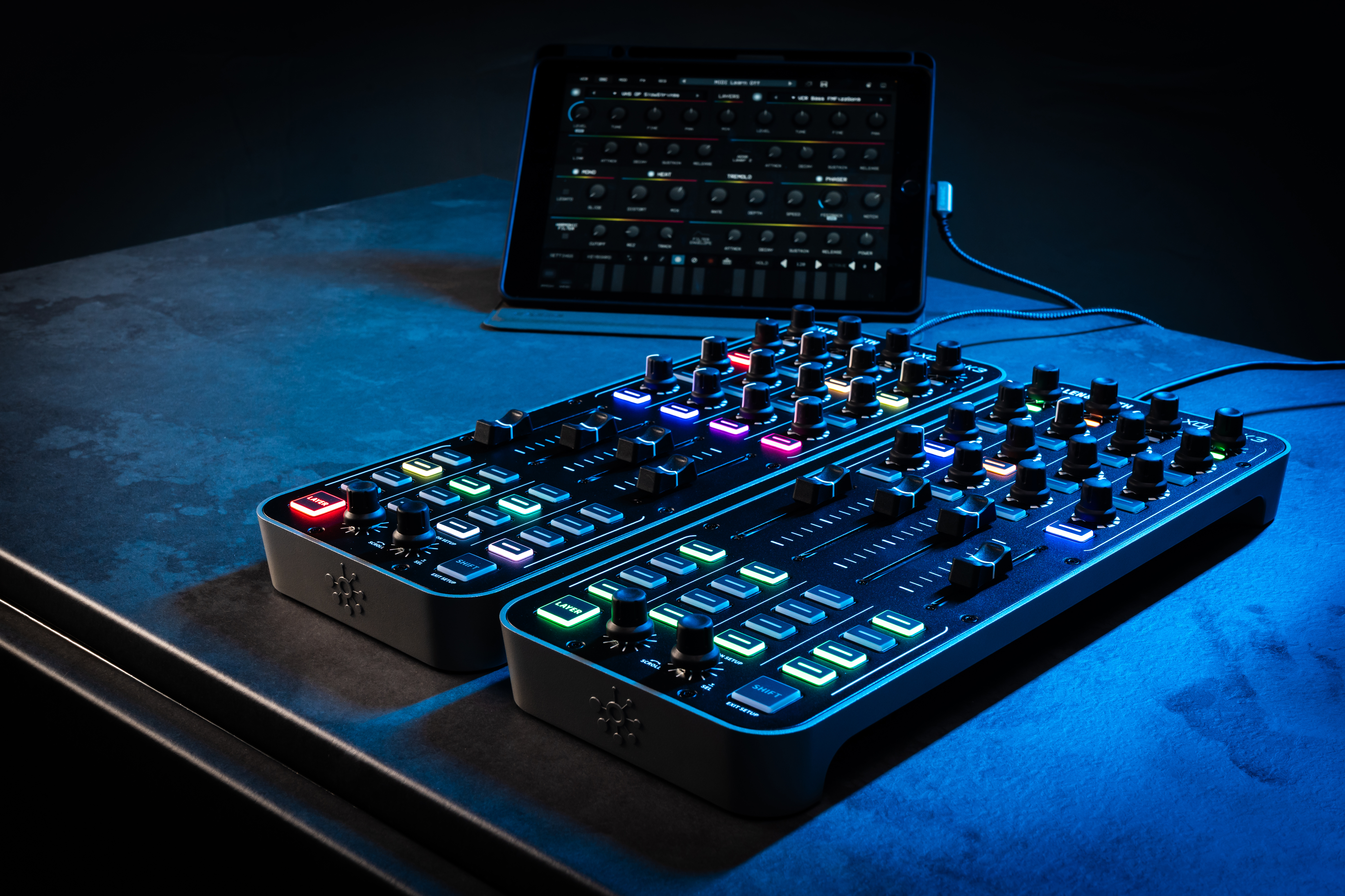 Avec 52 contrôles physiques répartis entre boutons, faders, potentiomètres et encodeurs, la Xone:K3 offre une palette de manipulation digne d’une console de studio. Grâce à ses trois couches indépendantes, chaque commande peut être multipliée par trois, portant le total à 174 paramètres MIDI assignables. De quoi piloter un set complet, un rack de production ou une installation audiovisuelle complexe.