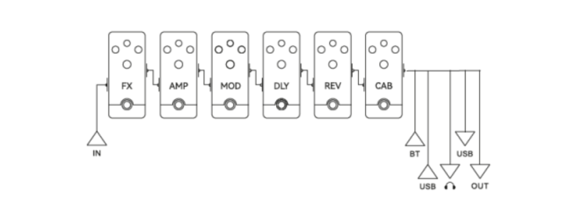 Côté ingrédients, c’est complet : Noise Gate, Boost, Compresseur, préamps guitare et basse, modulations (Chorus, Phaser, Tremolo, Flanger, Vibrato, Univibe, Auto-Wah), délais (Analog, Ducking, dTape, Dual, LoFi) et réverbes (Room, Hall, Spring, Shimmer, Cloud). La section CAB s’appuie sur des IR (impulse responses) sélectionnées avec Massimo Varini et DrapSound pour une réponse naturelle, précise et inspirante — exactement ce qui fait la différence dans un mix.