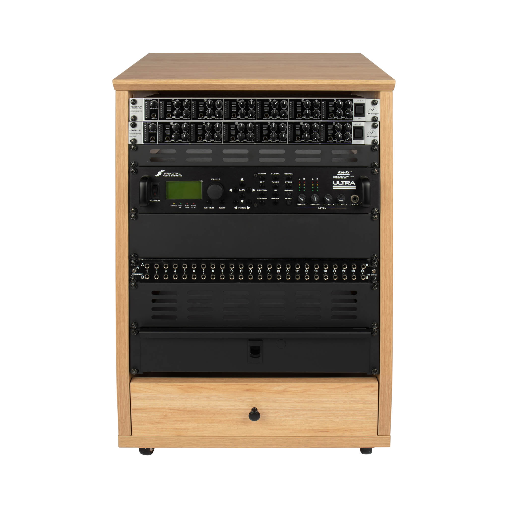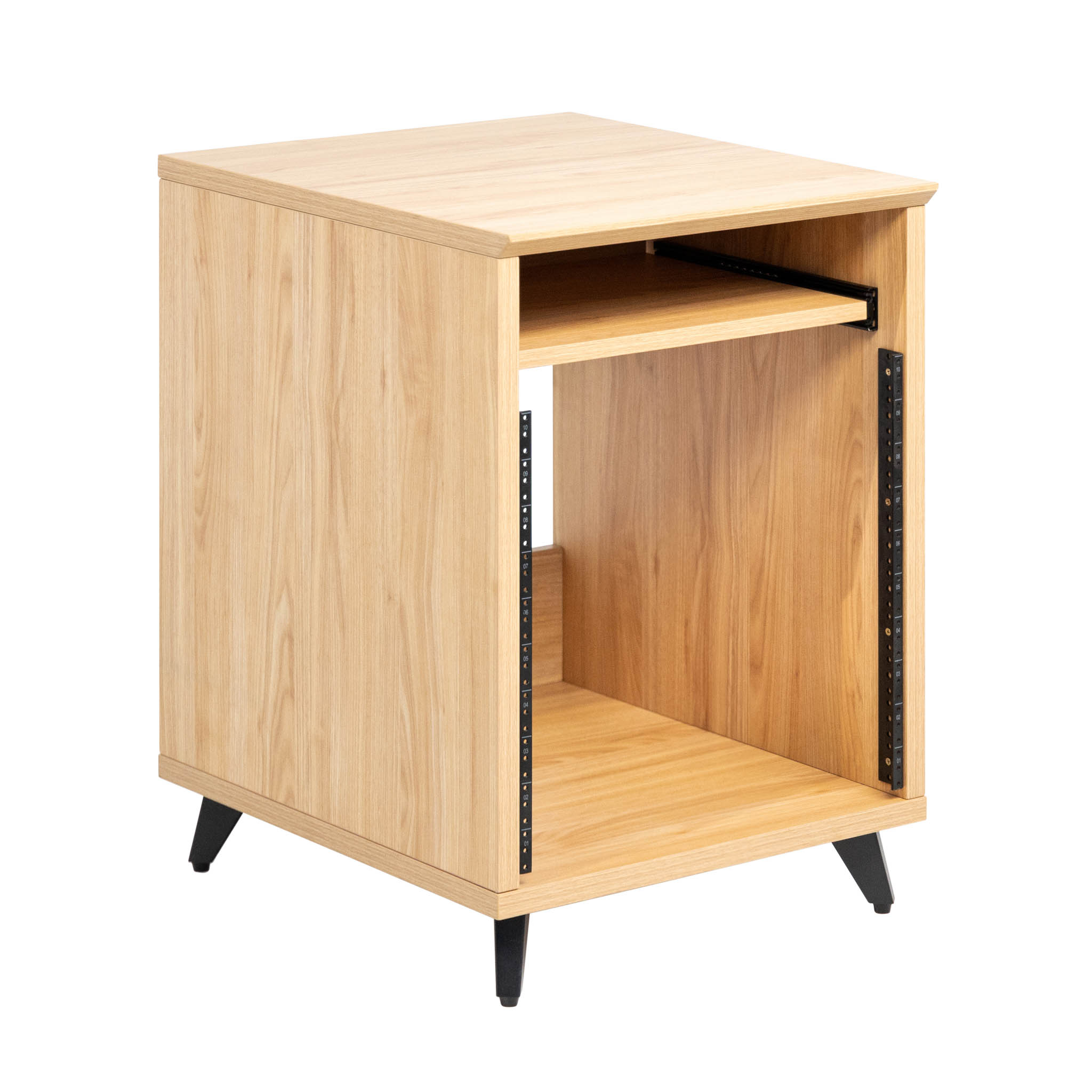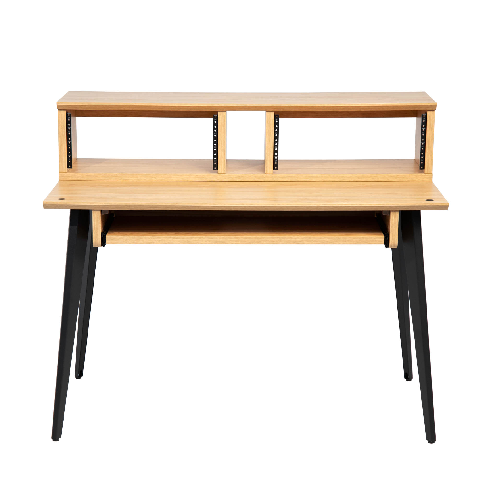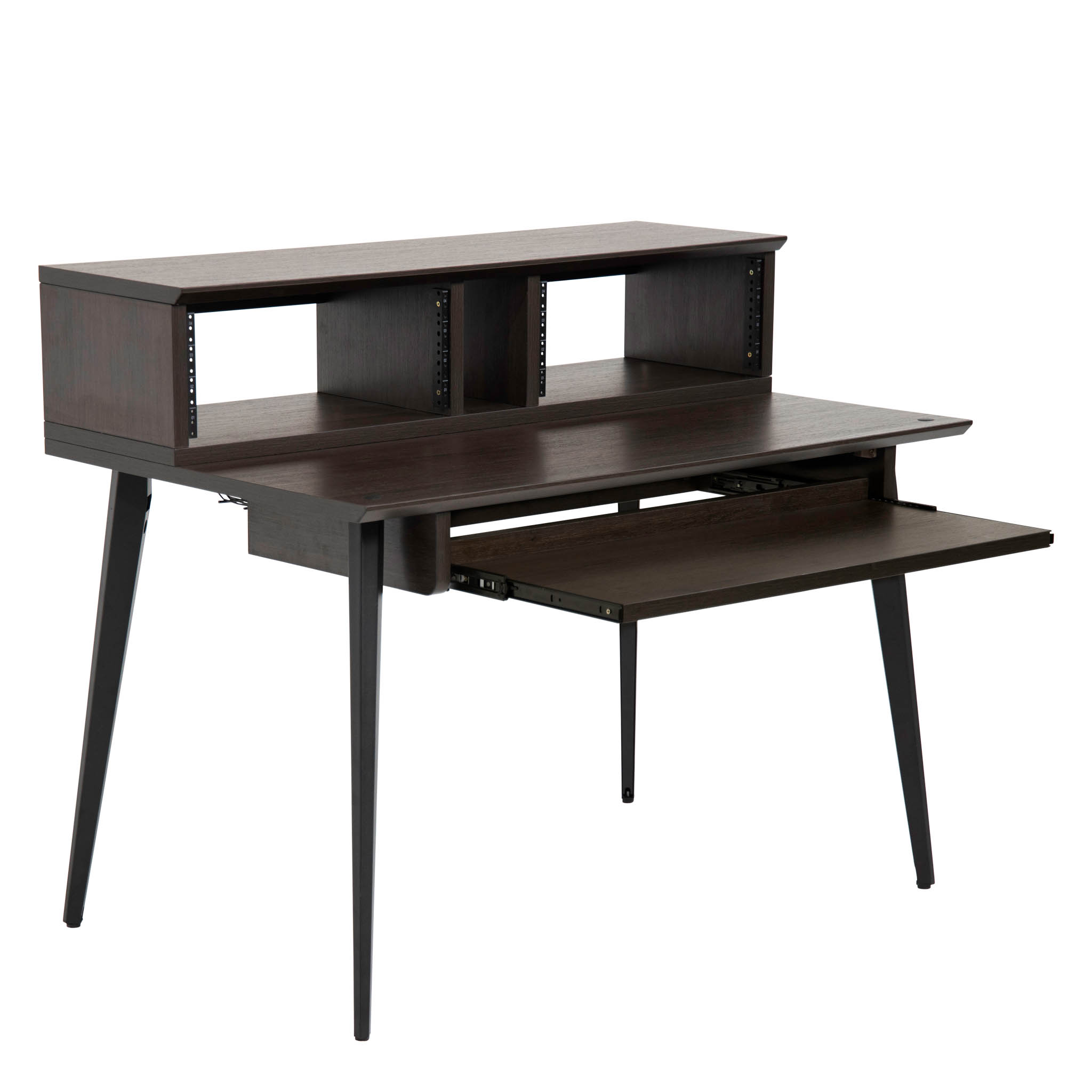 Pensés pour compléter un poste de production et garder les équipements essentiels à portée de main, leur structure angulée offre une visibilité optimale sur les appareils rackables.