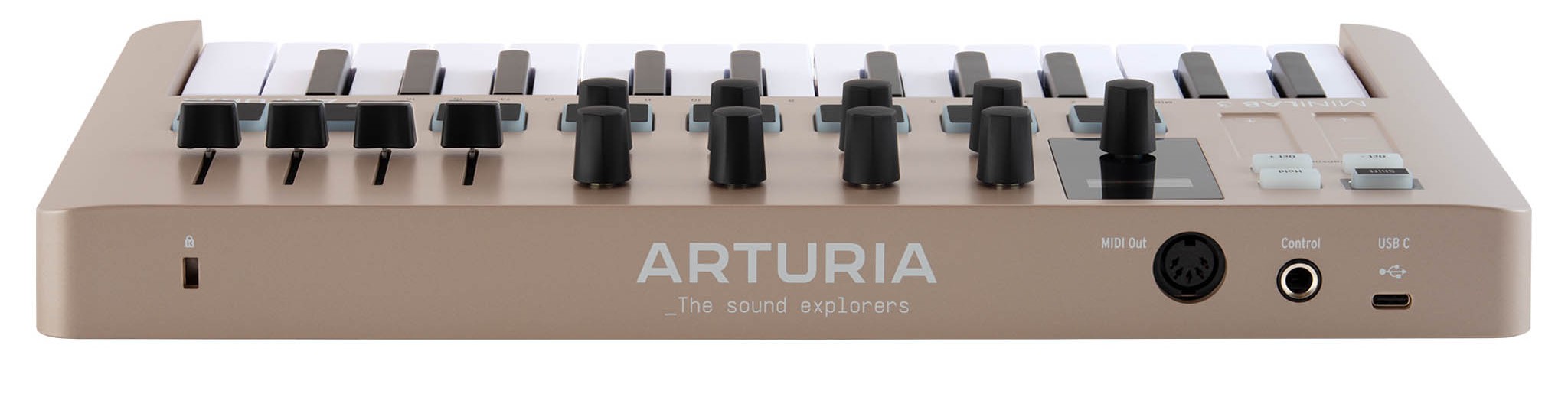 Grâce à sa connectivité USB-C et à sa sortie MIDI DIN 5 broches, le MiniLab 3 Champagne se connecte aussi bien à votre ordinateur qu’à vos synthés externes.