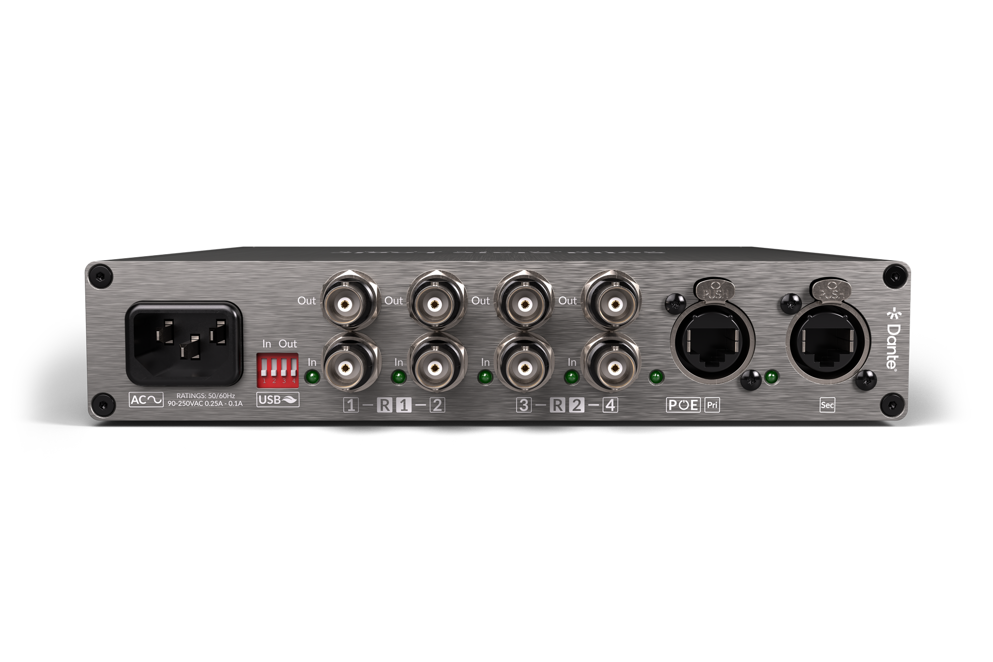 Le panneau avant offre des indicateurs clairs et lisibles : flux de signal, synchronisation, alimentation et état du réseau sont visibles en un coup d’œil. Les commandes sont verrouillées par défaut afin d’éviter toute mauvaise manipulation. Côté alimentation, l’UMD192 accepte le secteur, le PoE ou l’USB, avec possibilité de redondance — un gage de sécurité supplémentaire pour les environnements sensibles.