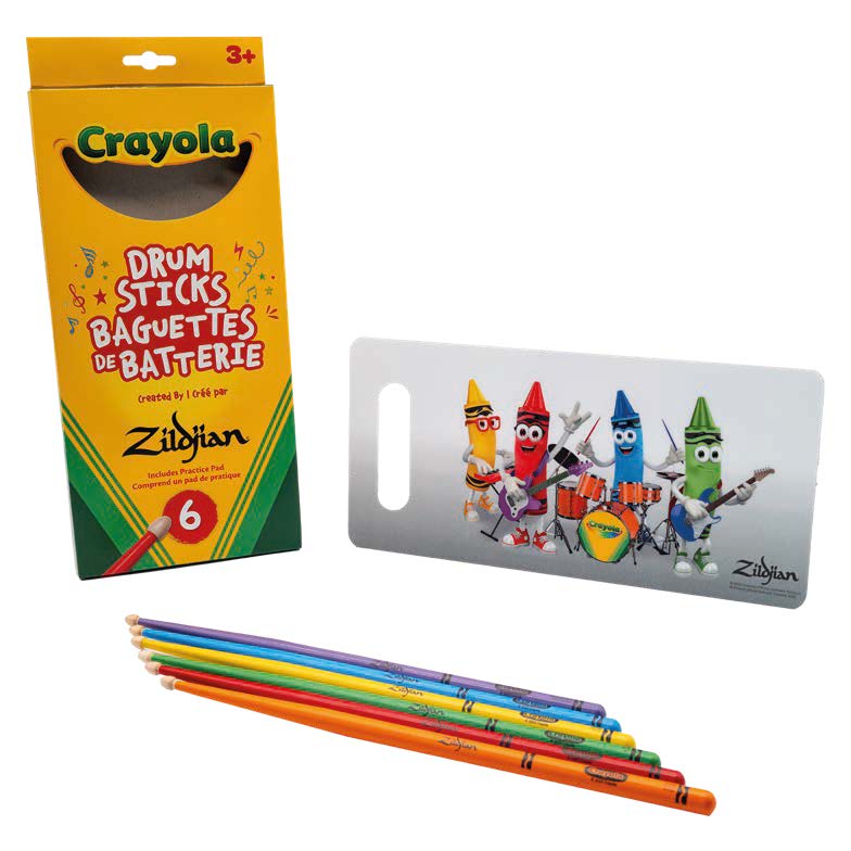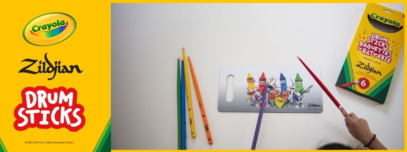 Zildjian est fier de collaborer avec la marque iconique pour enfants Crayola afin de proposer un pack de baguettes et pad pour les batteurs de demain.