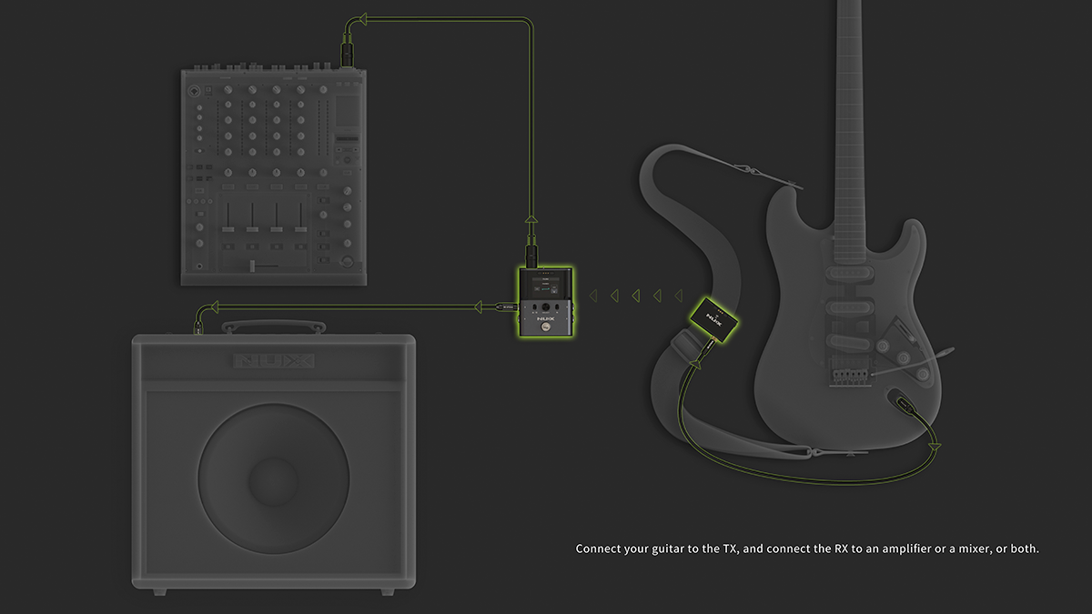 Dans la continuité de ses systèmes sans-fil performants, Nux a développé le B-8, constitué d’un émetteur sur batterie très compact, s’appairant automatiquement avec le récepteur format pédale, parfaitement étudié pour s’intégrer à votre pedalboard. Fonctionnant sous bande wifi 2,4 GHz, il délivre une transmission audio de haute qualité en 24 bits / 48 kHz, pour une latence de transmission de 2,5 ms (instantanée) à 8,7 ms (stabilité du signal), pour une performance et une sensation de jeu optimale. Sa portée opérationnelle s’étend jusqu’à 60 m, suivant la qualité de l’environnement de jeu, offrant ainsi une très large liberté de mouvement.