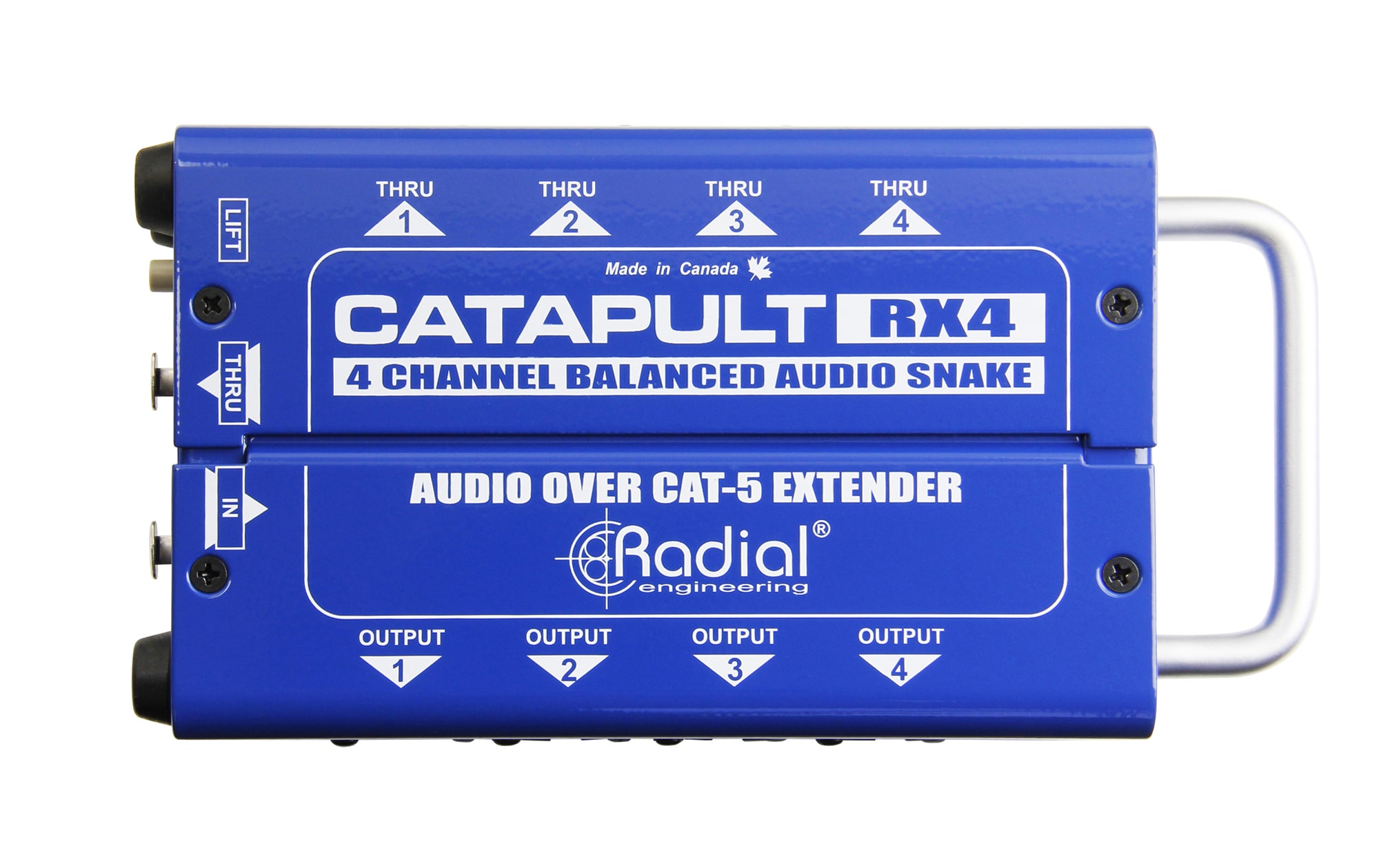 Les Catapult sont des séparateurs audio modulaires 4 canaux, présentant un module émetteur et récepteur transmettant un signal analogique ou numérique (AES) via un câble blindé CAT5. Chaque module émetteur dispose de 4 entrées et 4 sorties XLR, connecté à un module récepteur offrant deux séries de 4 sorties XLR. Ce système offre une flexibilité exceptionnelle grâce aux 6 modules équipés sorties XLR parallèles, et des sorties isolé niveau micro ou ligne. Chaque module est équipé d'un interrupteur de masse éliminant les interférences.