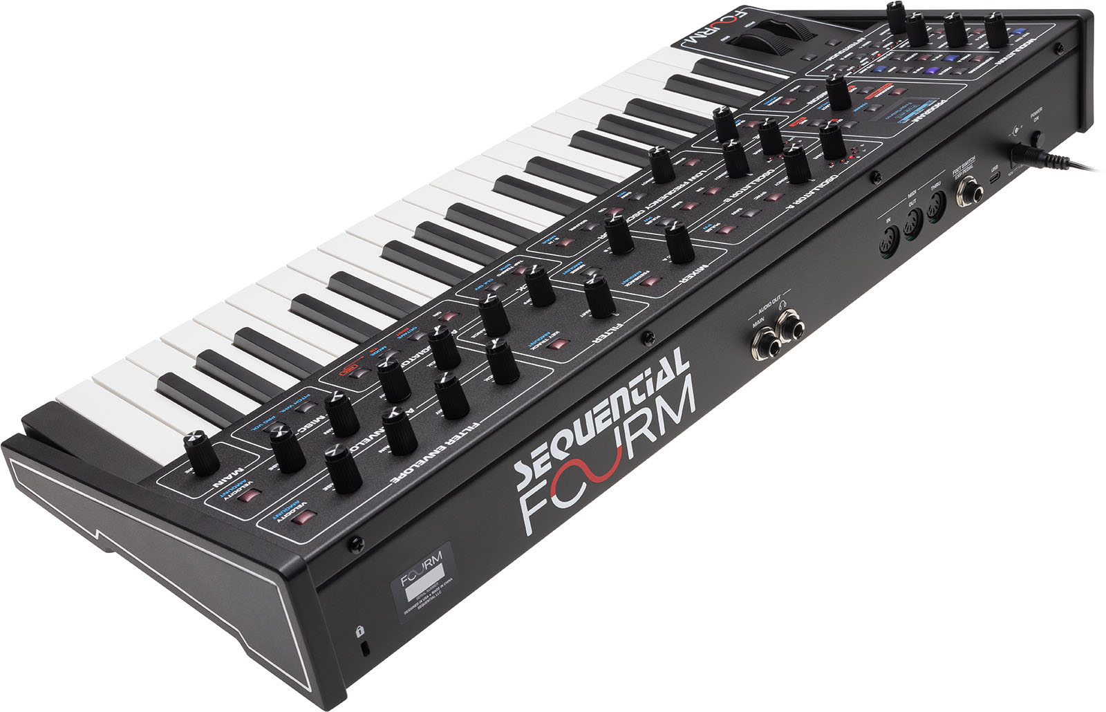 Les quatre voix du Fourm sont basées sur l’architecture du célèbre Prophet-5, et ce jusqu’aux courbes des enveloppes. Vous profitez ainsi du véritable son analogique de Sequential. Avec ses deux oscillateurs permettant de sélectionner simultanément les formes d’onde et son filtre passe-bas classique à 4 pôles, lequel dispose désormais d’une fonction de compensation des graves, Fourm apporte une dimension inédite à ce caractère punchy et chaleureux qui a façonné le son d’une génération.