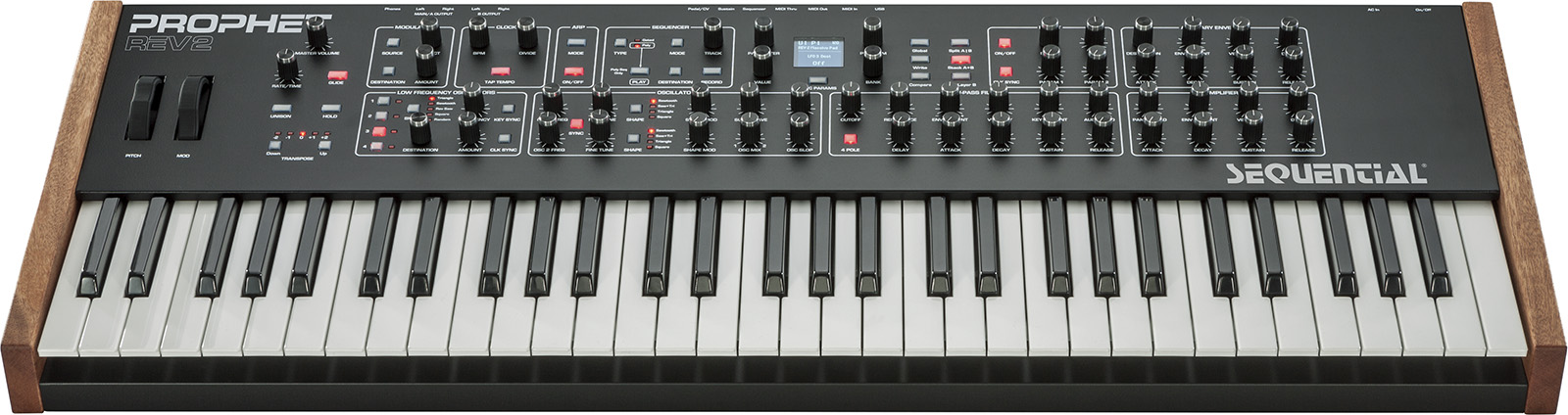 Avec le Prophet Rev2, Dave Smith repense son synthétiseur polyphonique Prophet '08 — un classique moderne présent sur un nombre incalculable de disques et de scènes depuis son lancement en 2007. Comme l'explique Dave, "le Prophet Rev2 est la concrétisation de notre volonté d'améliorer tout ce qui était possible sur le modèle original — le tout à un tarif plus abordable." Le Prophet Rev2 conserve toutes les fonctionnalités principales du Prophet '08 et les complète. Ainsi, il double la polyphonie, la matrice de modulation, apporte de la modulation à toutes les formes d'onde, des effets numériques par couche en modes de voix superposées ou séparées, un step-séquenceur polyphonique par couche sonore, etc. Il en résulte un véritable colosse analogique. Et surtout, vous pouvez télécharger n'importe laquelle des nombreuses banques de sons du Prophet '08 existantes ; elles ne sonneront pas à l'identique mais pourront être améliorées avec les nouvelles fonctionnalités.