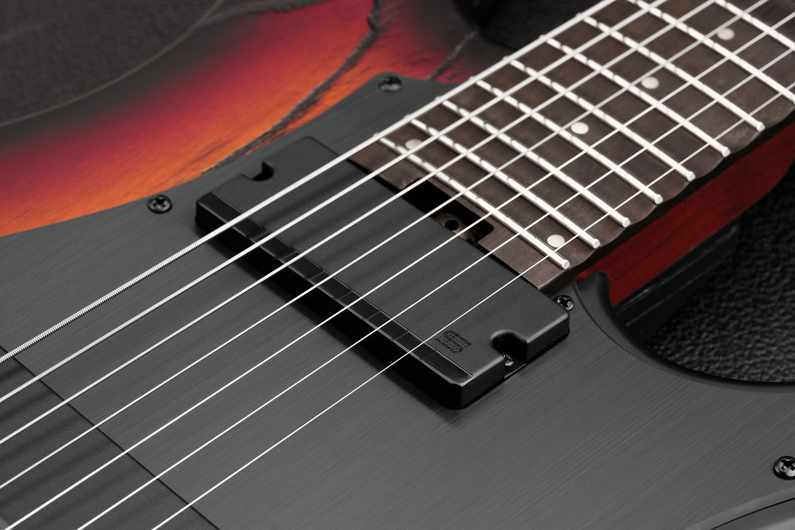 Le MortalCoil 7 cordes reçoit un système de montage actif de type Soapbar, qui le distingue de sa version 6 cordes.